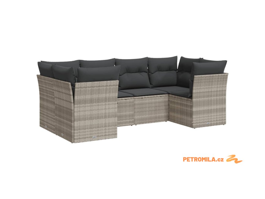 6dílná zahradní sedací souprava a podušky světle šedá polyratan