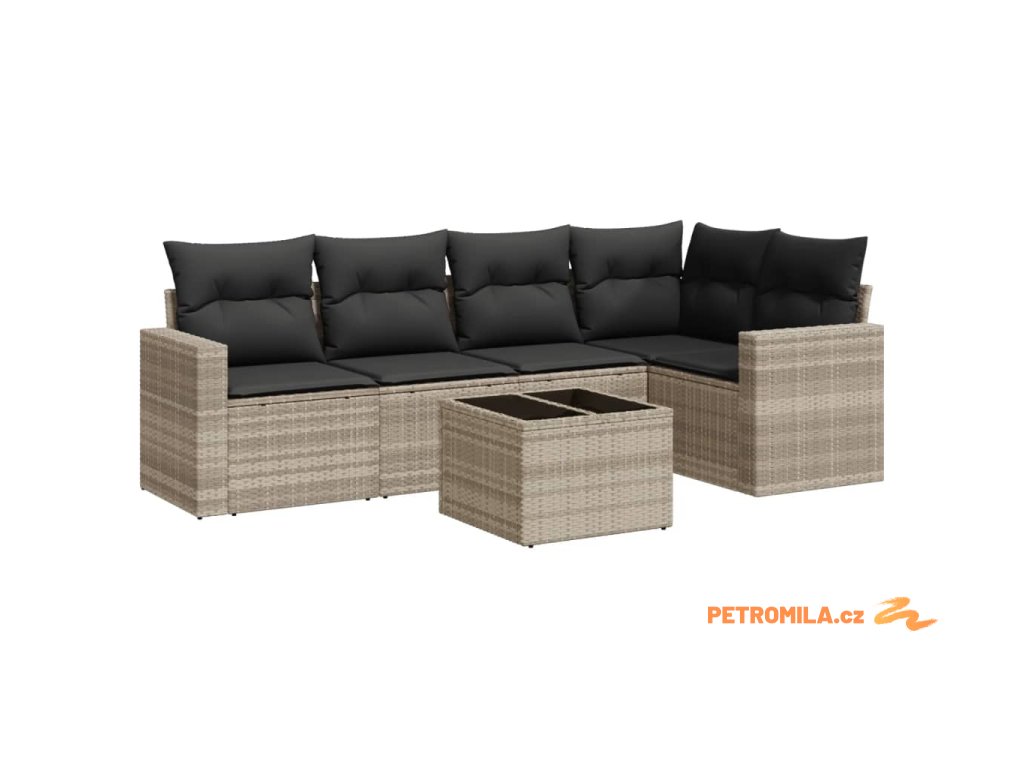 6dílná zahradní sedací souprava a podušky světle šedá polyratan