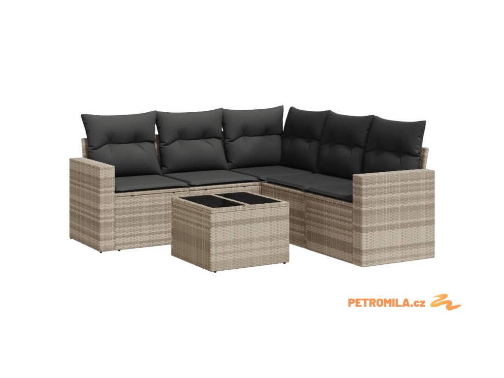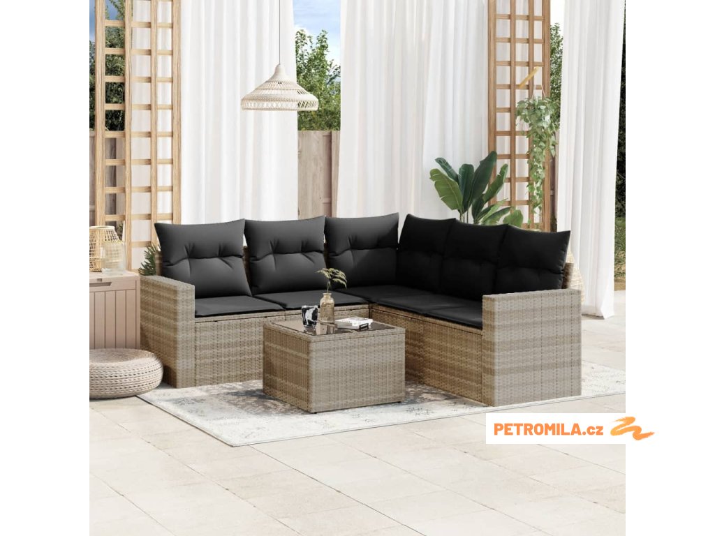 6dílná zahradní sedací souprava a podušky světle šedá polyratan