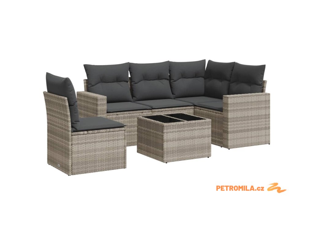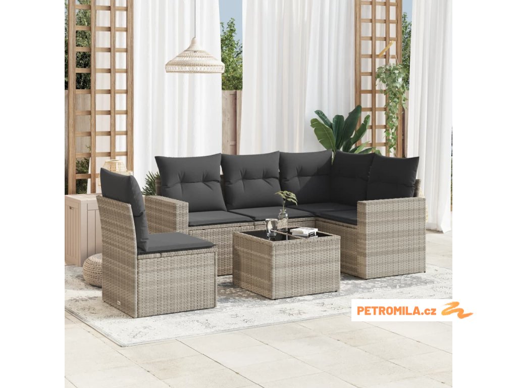 6dílná zahradní sedací souprava a podušky světle šedá polyratan