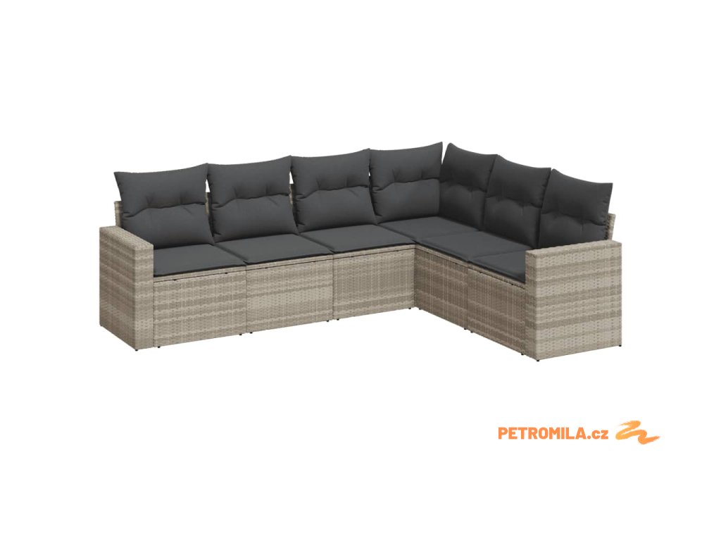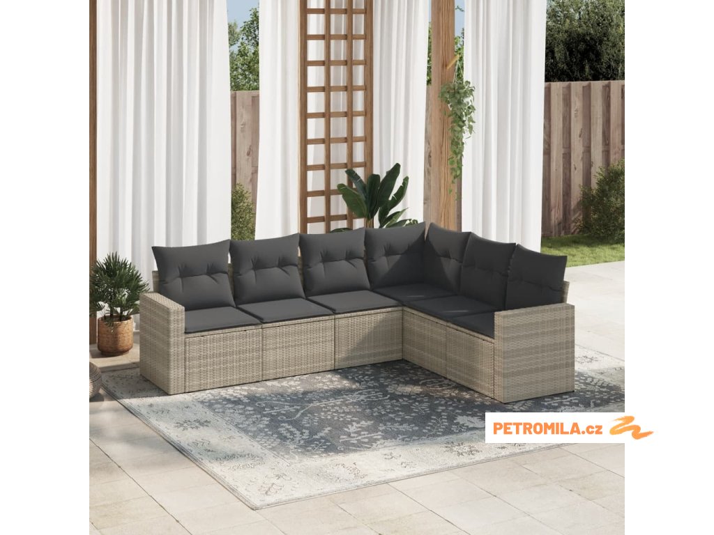 6dílná zahradní sedací souprava a podušky světle šedá polyratan