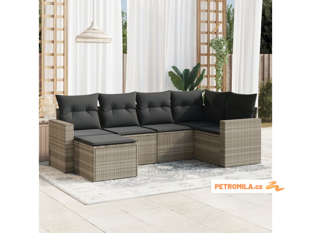 6dílná zahradní sedací souprava a podušky světle šedá polyratan