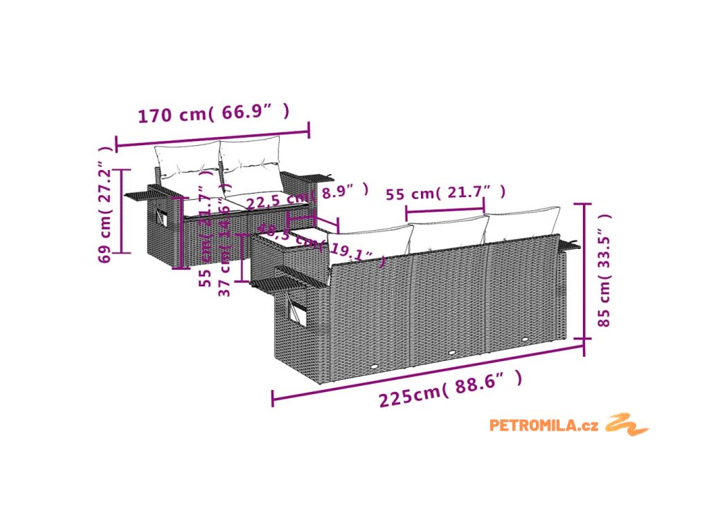 Tato zahradní sedací souprava je dokonalým doplňkem vaší zahrady, terasy nebo dvorku a poskytne vám pohodlné a příjemné místo, kde si můžete povídat s rodinou a přáteli nebo jen tak odpočívat a užívat si pobyt venku.