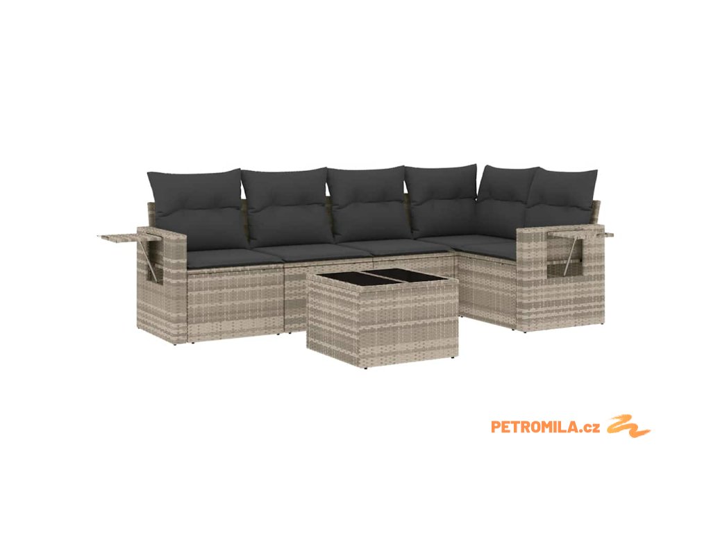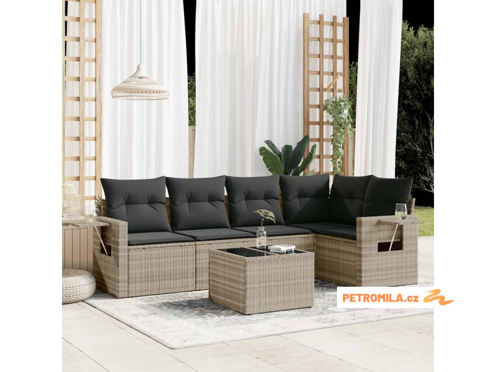 6dílná zahradní sedací souprava a podušky světle šedá polyratan