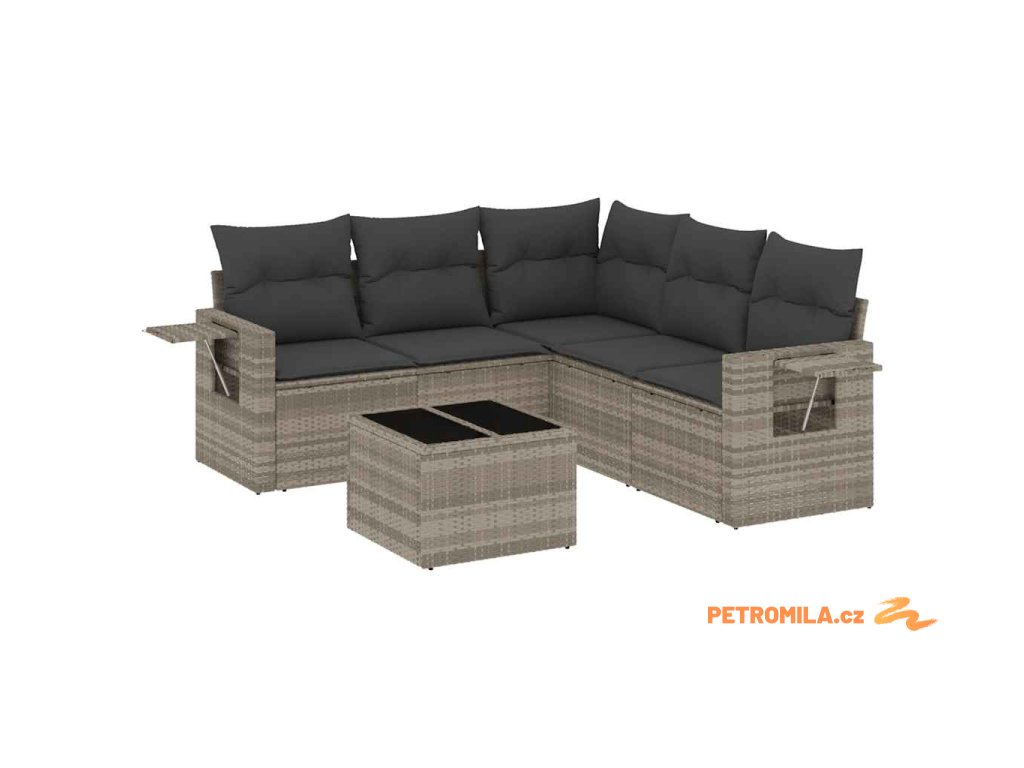 6dílná zahradní sedací souprava a podušky světle šedá polyratan