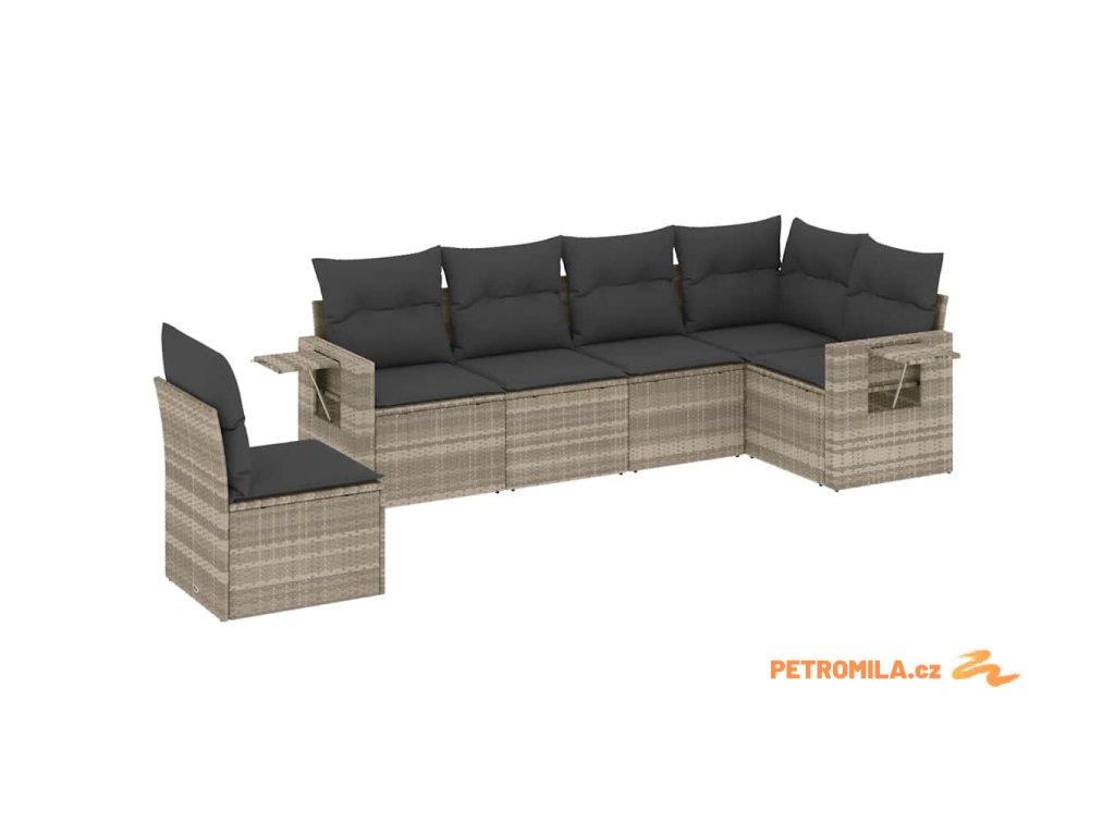 6dílná zahradní sedací souprava a podušky světle šedá polyratan