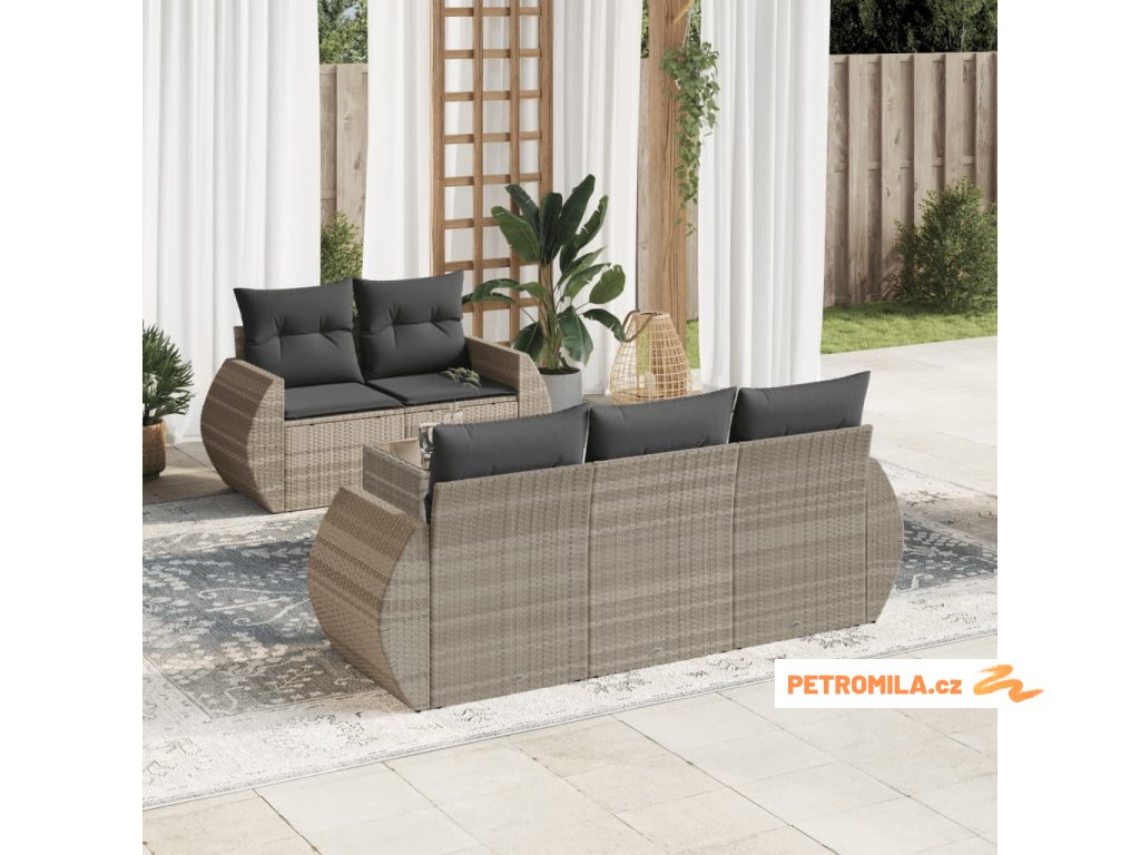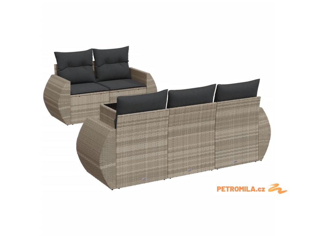 6dílná zahradní sedací souprava a podušky světle šedá polyratan