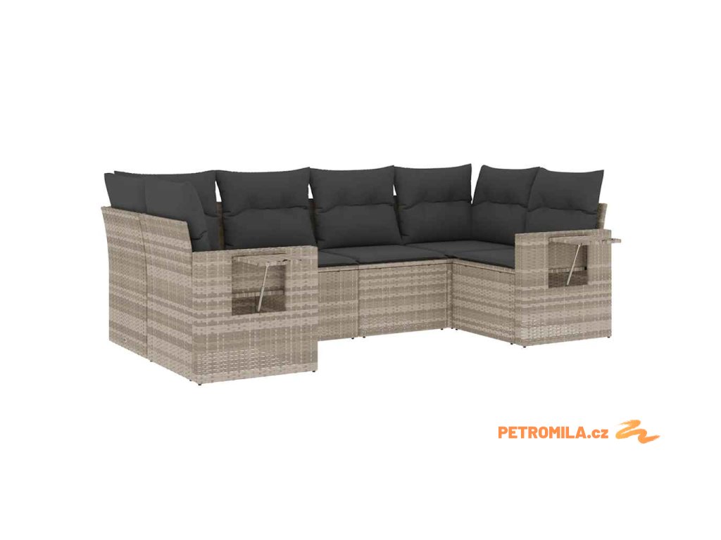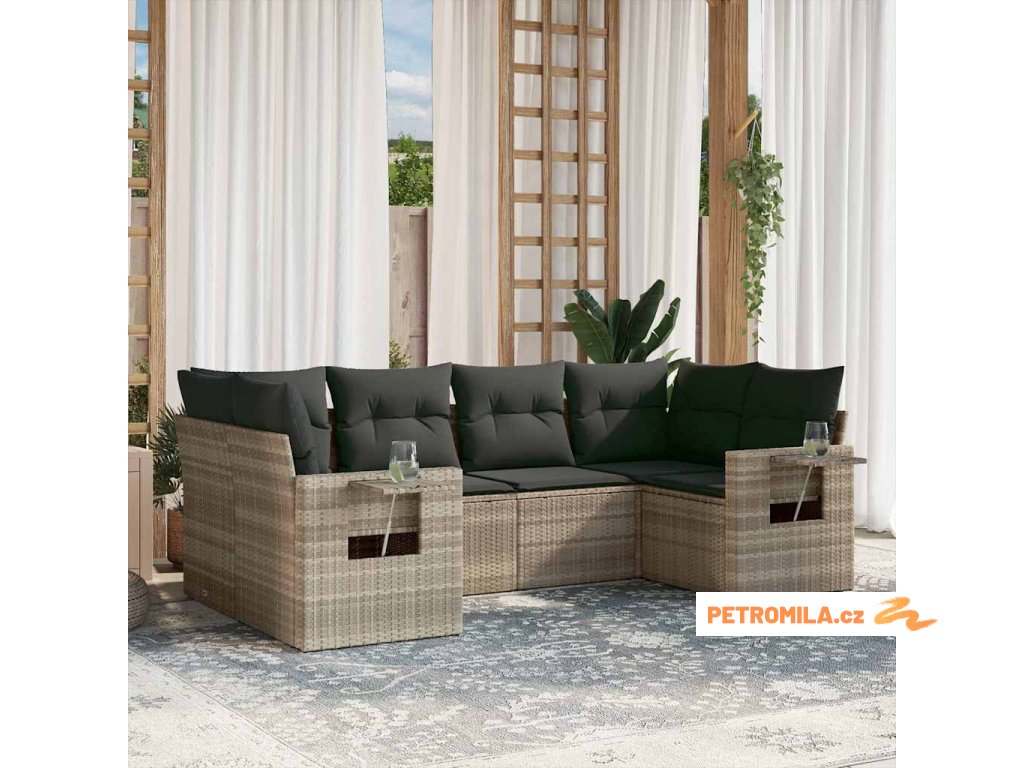 6dílná zahradní sedací souprava a podušky světle šedá polyratan