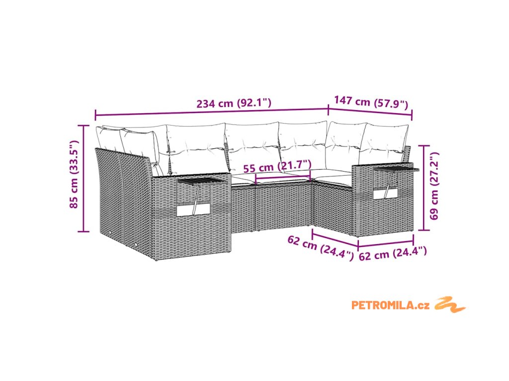 Tato zahradní sedací souprava je dokonalým doplňkem vaší zahrady, terasy nebo dvorku a poskytne vám pohodlné a příjemné místo, kde si můžete povídat s rodinou a přáteli nebo jen tak odpočívat a užívat si pobyt venku.