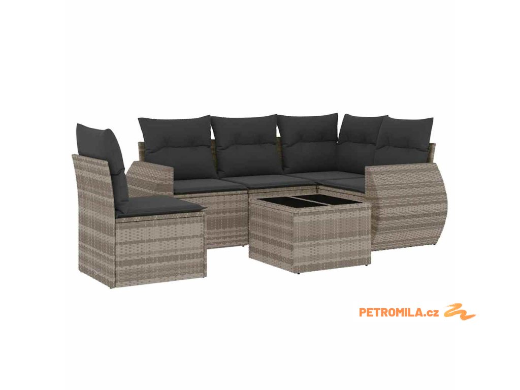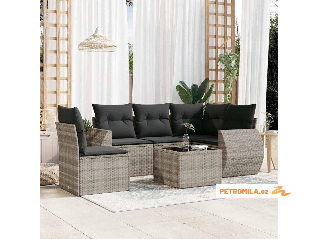 6dílná zahradní sedací souprava a podušky světle šedá polyratan