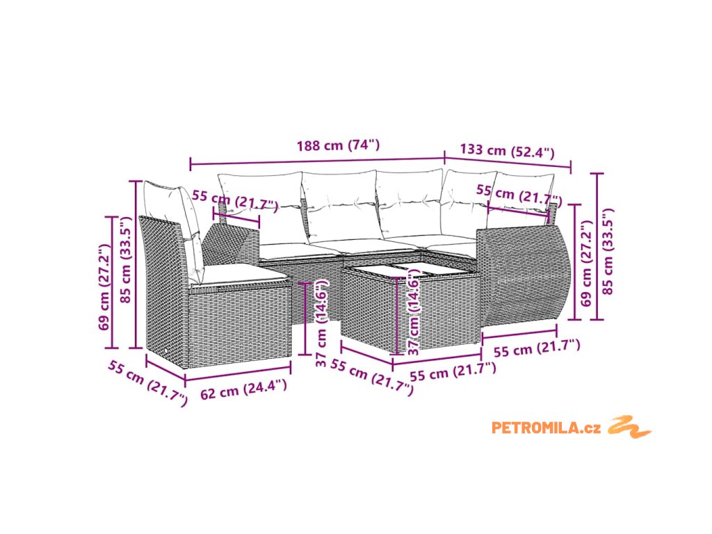 Tato zahradní sedací souprava je dokonalým doplňkem vaší zahrady, terasy nebo dvorku a poskytne vám pohodlné a příjemné místo, kde si můžete povídat s rodinou a přáteli nebo jen tak odpočívat a užívat si pobyt venku.