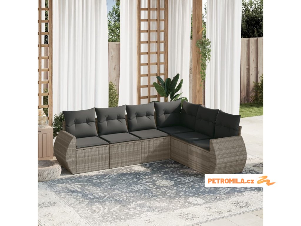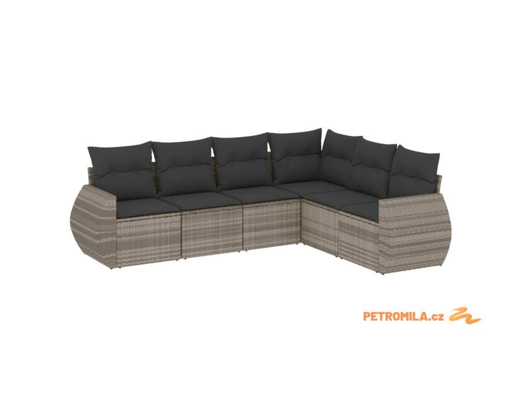 6dílná zahradní sedací souprava a podušky světle šedá polyratan