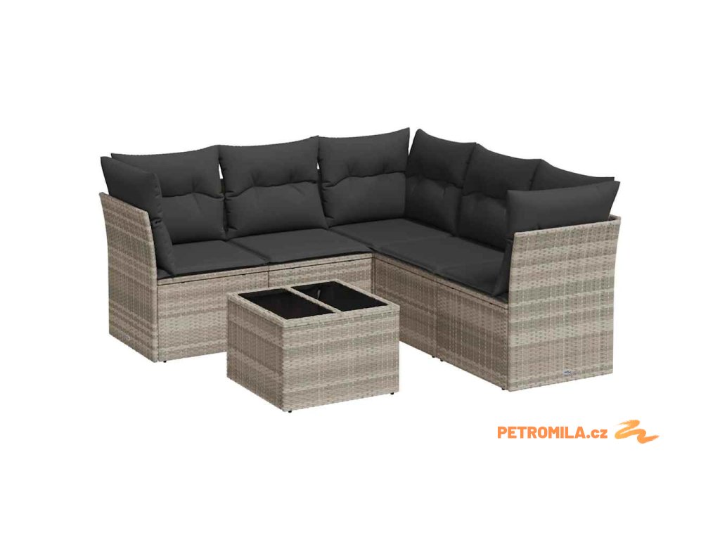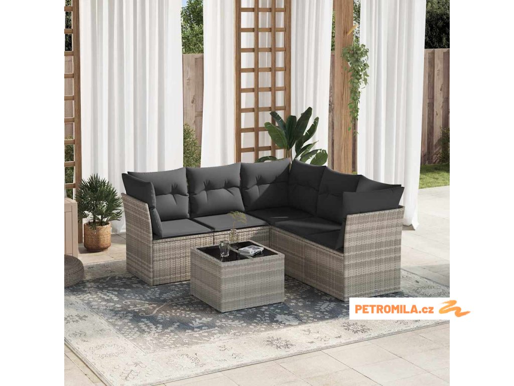 6dílná zahradní sedací souprava a podušky světle šedá polyratan