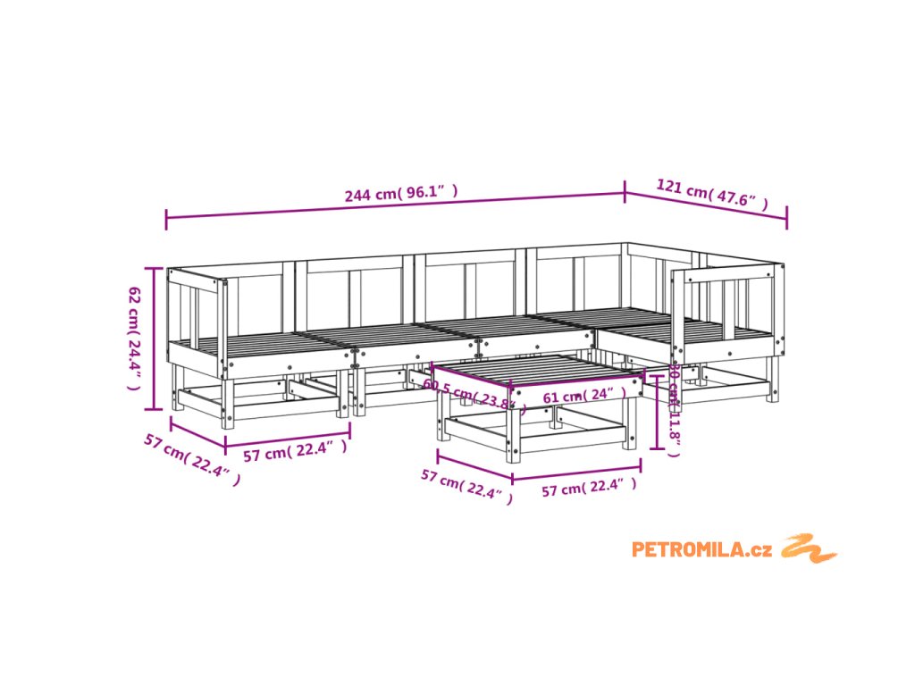 - Rozměry středové pohovky: 61 x 60,5 x 62 cm (D x Š x V)