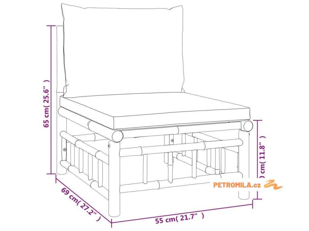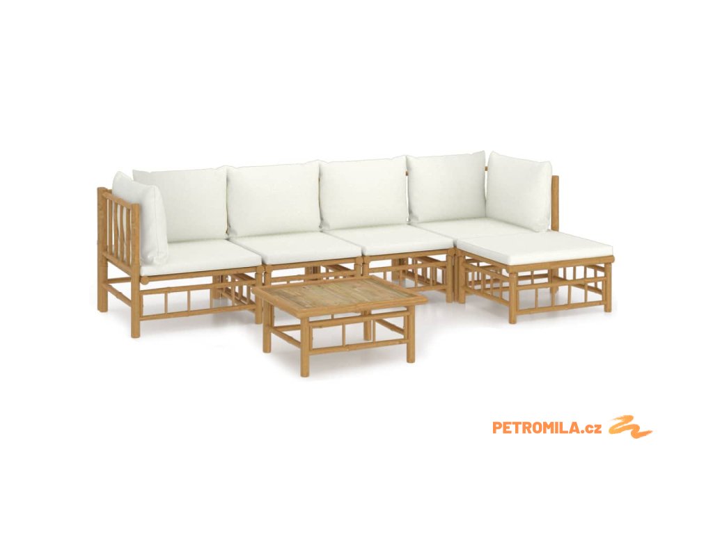 6dílná zahradní sedací souprava krémově bílé podušky bambus