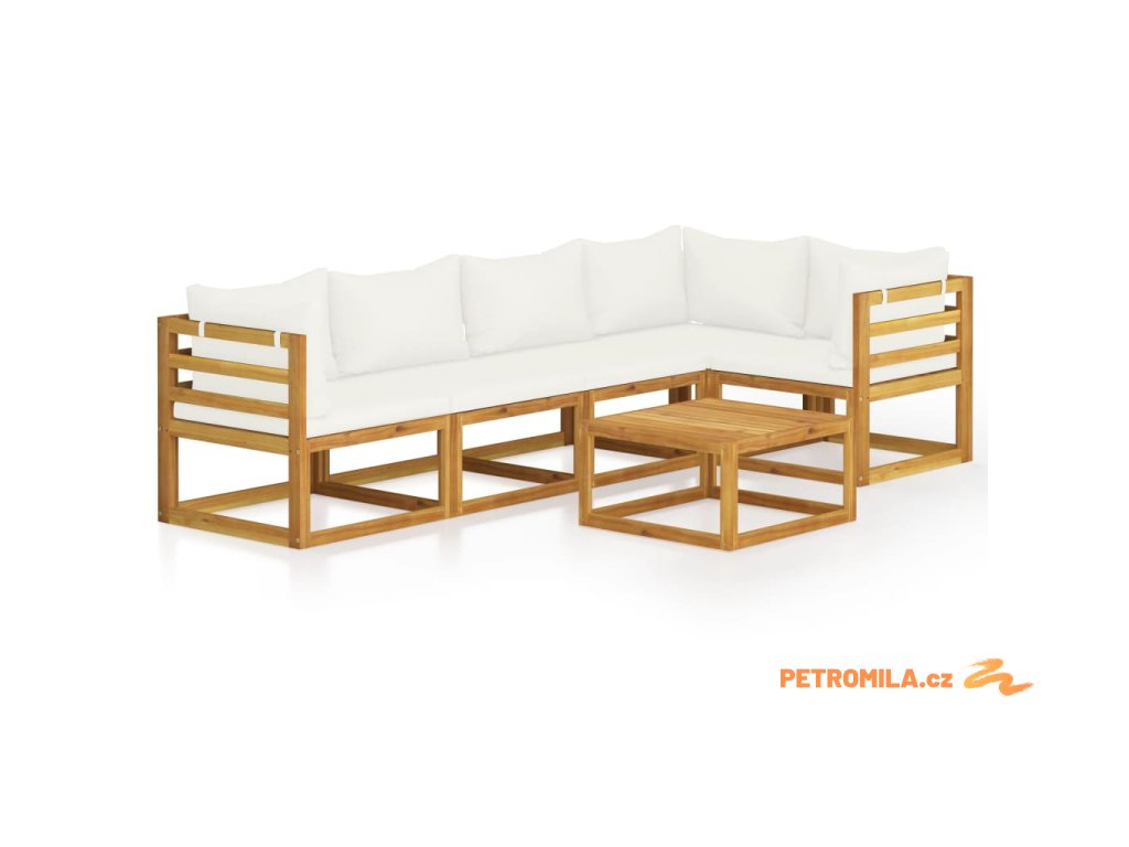 6dílná zahradní sedací souprava krémové podušky masivní akácie