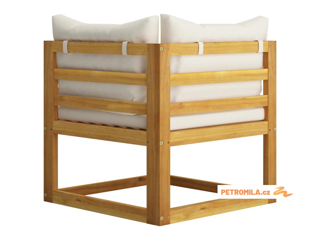 Rám z masivního akáciového dřeva je pevný, odolný a má dlouhou životnost. Dřevo je napuštěné olejem, sedací souprava je proto vhodná i pro venkovní použití. Odnímatelné podušky na sedáky a opěradla jsou silně polstrované, takže se vám na nich bude nesmírně dobře sedět. Součástí balení je také konferenční stolek v unikátním laťkovém provedení. Nevšední modulární design vám umožní všechny díly přestavovat a upravovat dle momentálních potřeb.