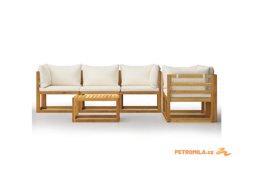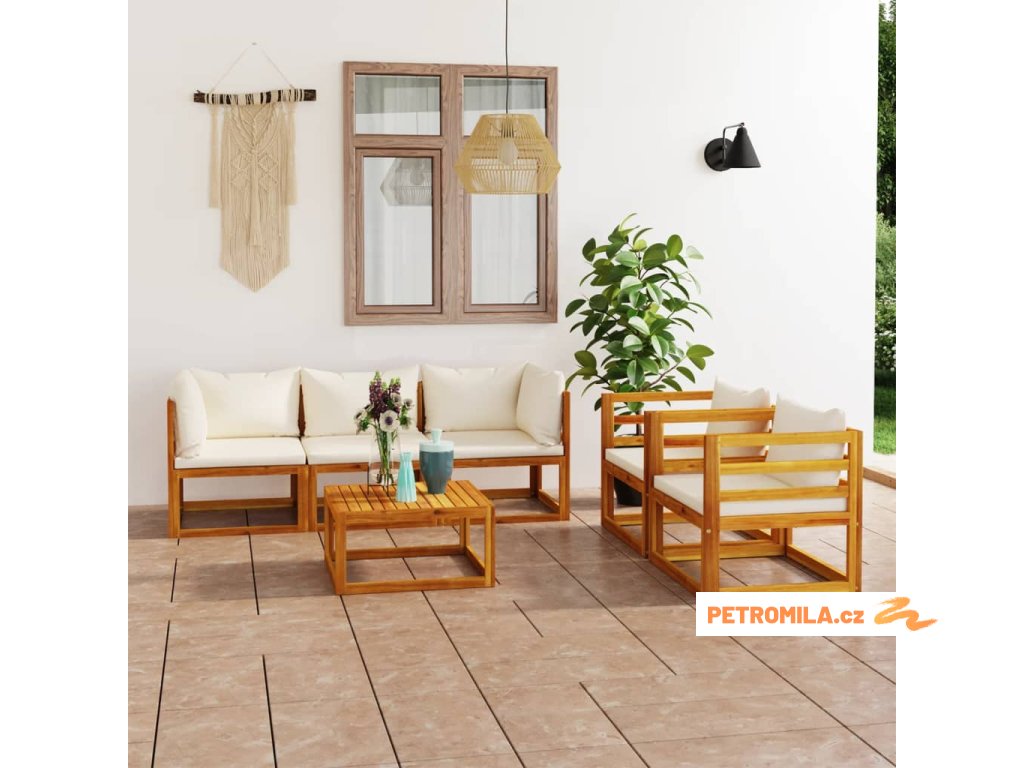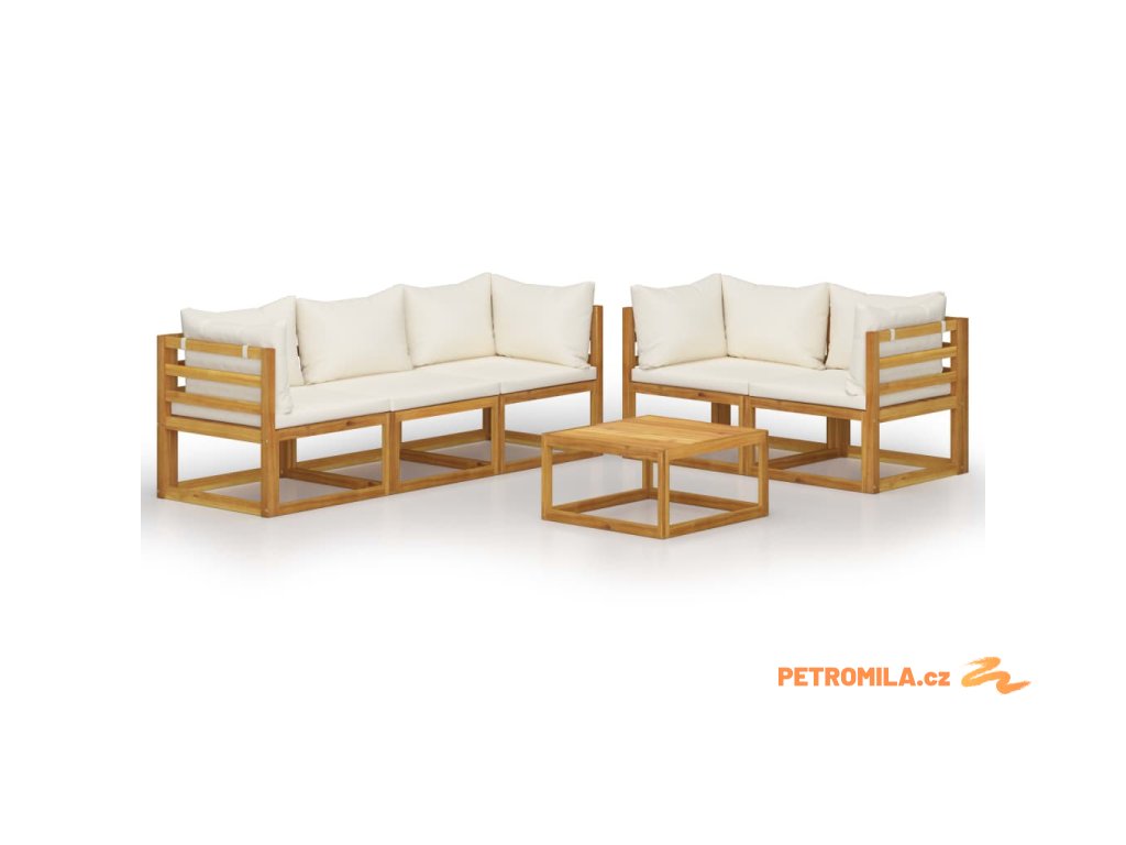 6dílná zahradní sedací souprava krémové podušky masivní akácie