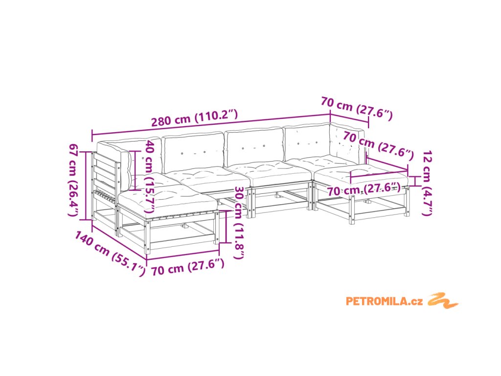 6dílná zahradní sedací souprava podušky voskově hnědá borovice