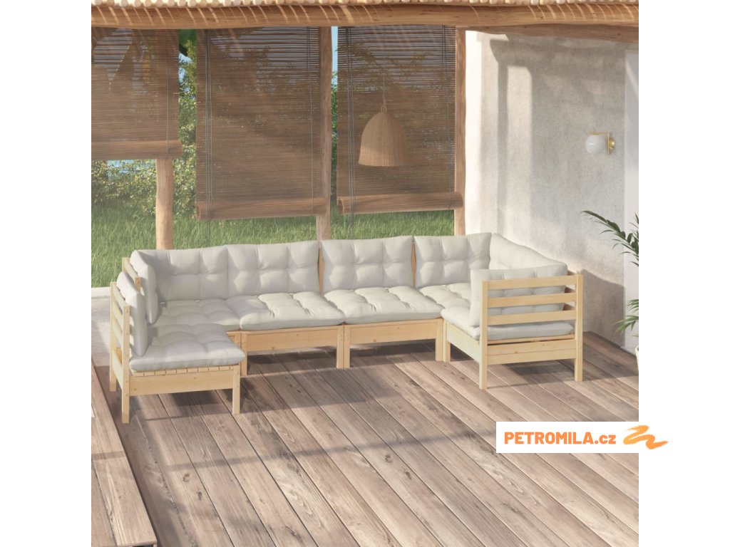6dílná zahradní sedací souprava s krémovými poduškami borovice