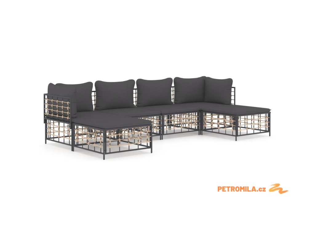 6dílná zahradní sedací souprava s poduškami antracit polyratan