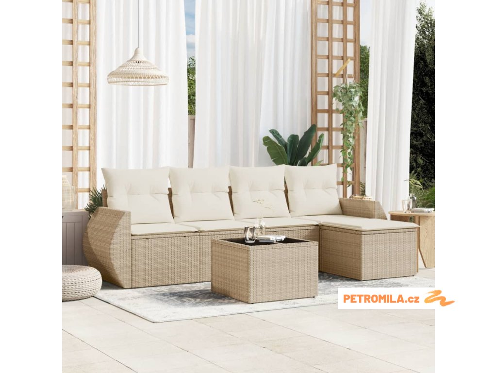 6dílná zahradní sedací souprava s poduškami béžová polyratan
