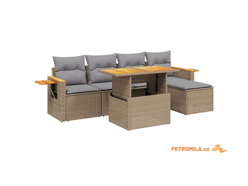 6dílná zahradní sedací souprava s poduškami béžová polyratan