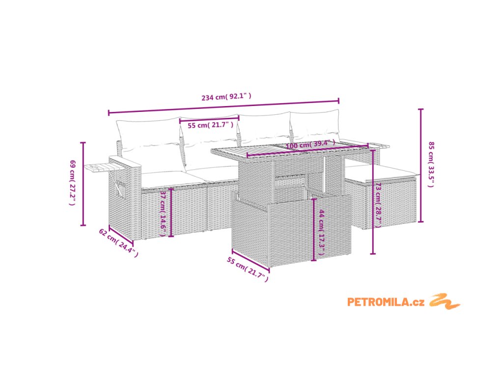 Tato zahradní sedací souprava je dokonalým doplňkem vaší zahrady, terasy nebo dvorku a poskytne vám pohodlné a příjemné místo, kde si můžete povídat s rodinou a přáteli nebo jen tak odpočívat a užívat si pobyt venku.