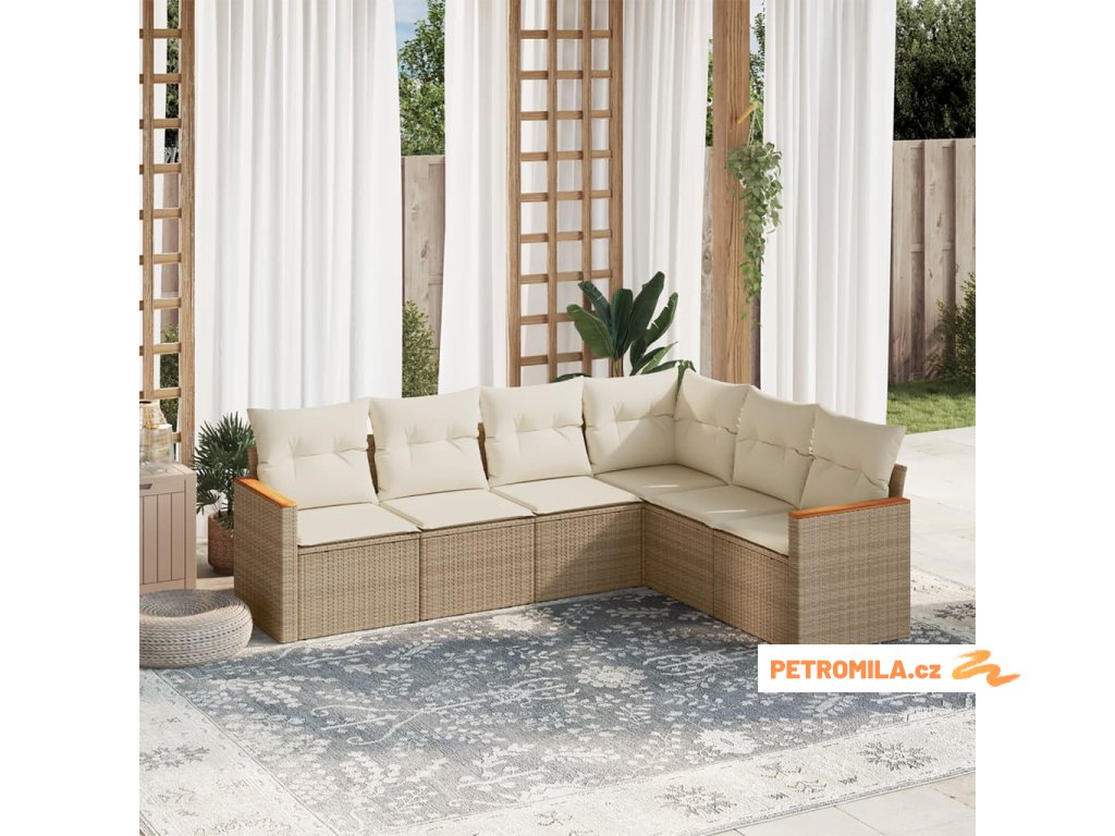 6dílná zahradní sedací souprava s poduškami béžová polyratan