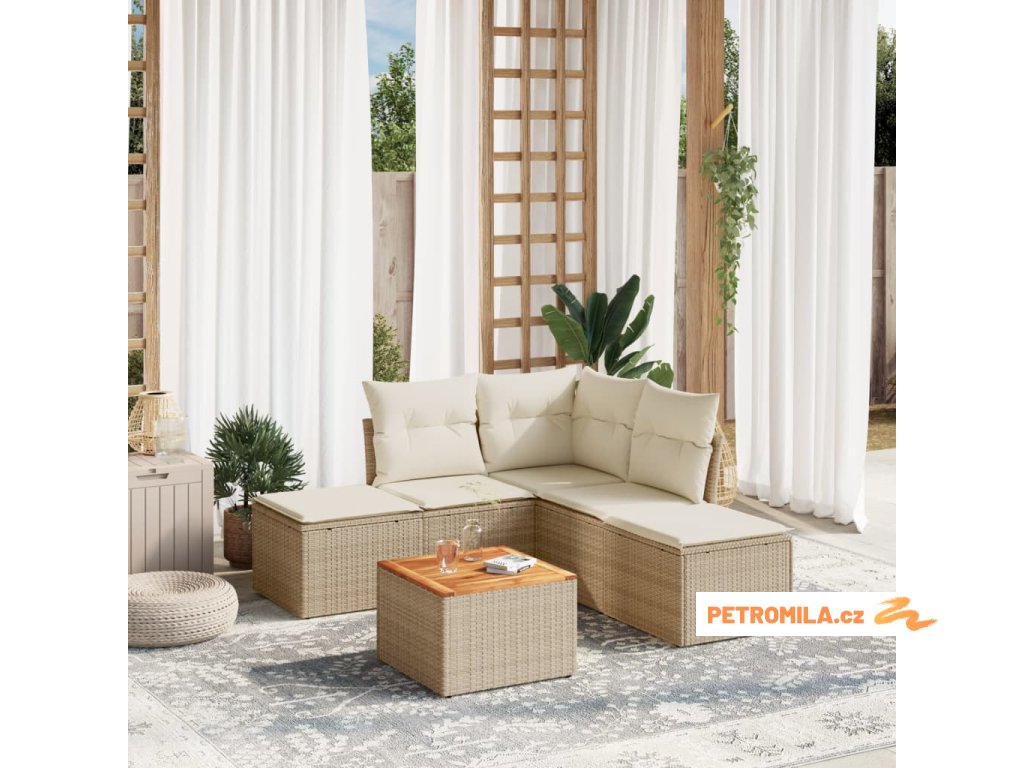 6dílná zahradní sedací souprava s poduškami béžová polyratan