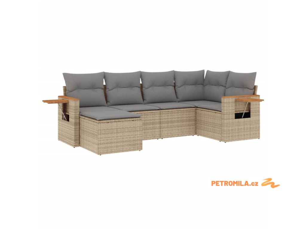 6dílná zahradní sedací souprava s poduškami béžová polyratan