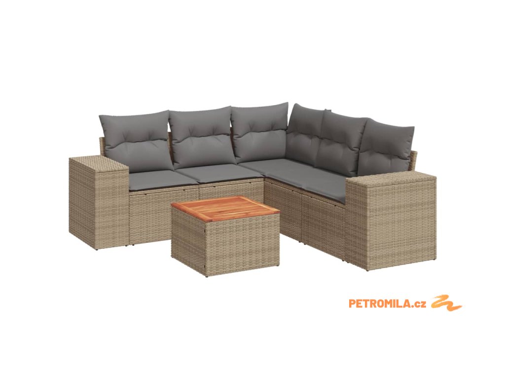 6dílná zahradní sedací souprava s poduškami béžová polyratan