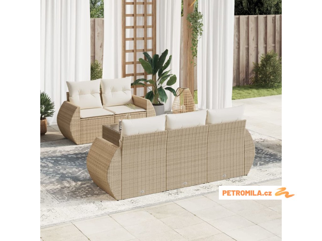 6dílná zahradní sedací souprava s poduškami béžová polyratan
