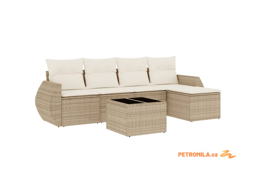 6dílná zahradní sedací souprava s poduškami béžová polyratan