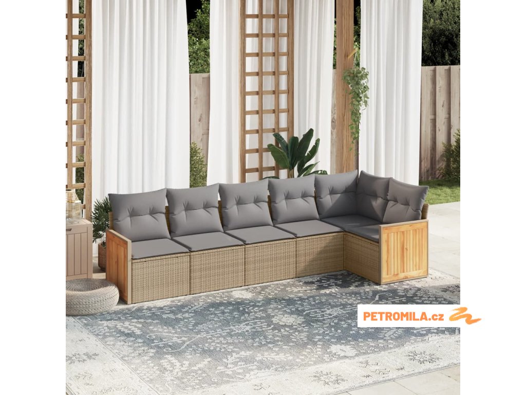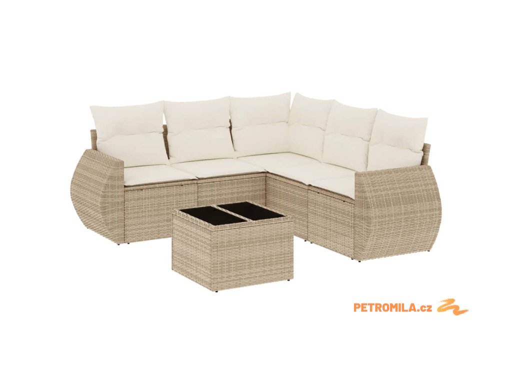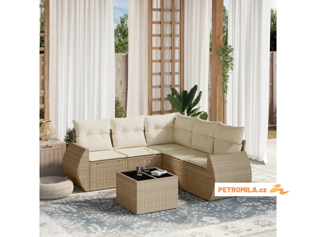 6dílná zahradní sedací souprava s poduškami béžová polyratan