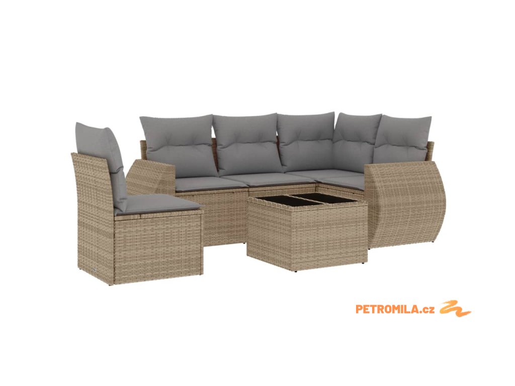 6dílná zahradní sedací souprava s poduškami béžová polyratan