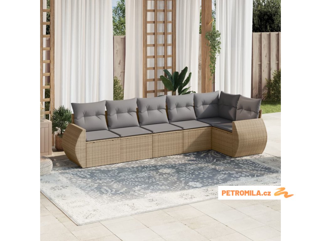 6dílná zahradní sedací souprava s poduškami béžová polyratan