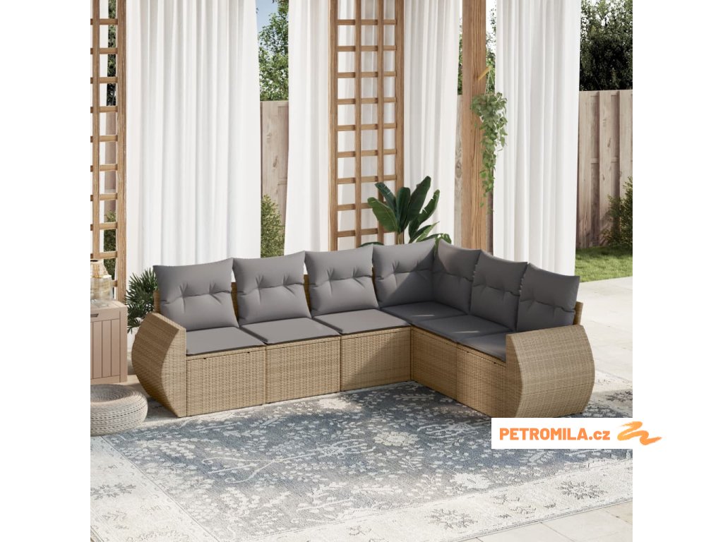 6dílná zahradní sedací souprava s poduškami béžová polyratan
