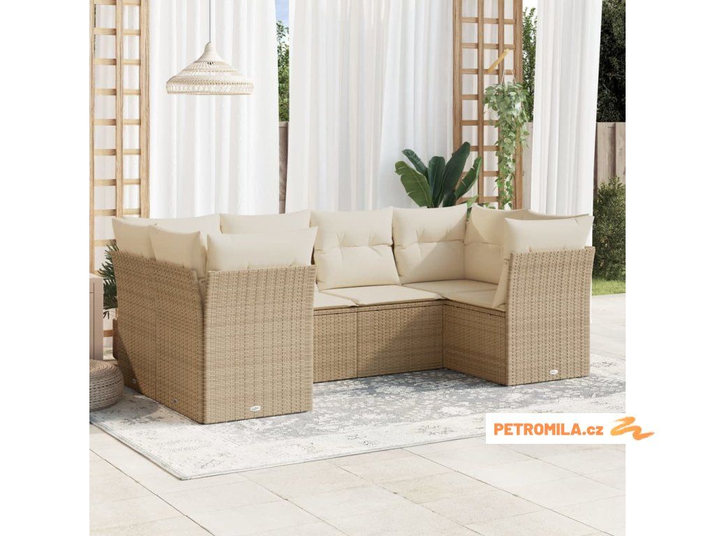 6dílná zahradní sedací souprava s poduškami béžová polyratan