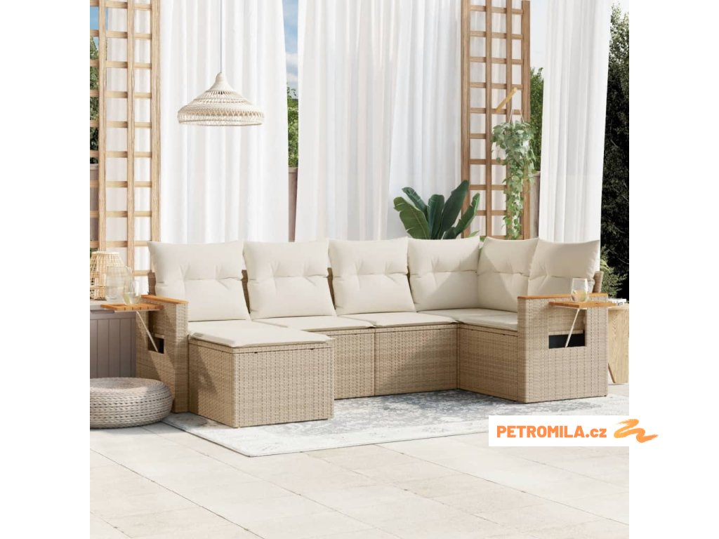 6dílná zahradní sedací souprava s poduškami béžová polyratan