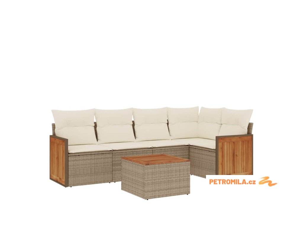 Sada zahradních pohovek s polštářem 6 pcs Béžová Poly ratan