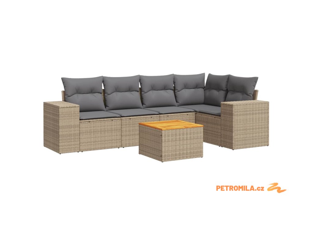 6dílná zahradní sedací souprava s poduškami béžová polyratan