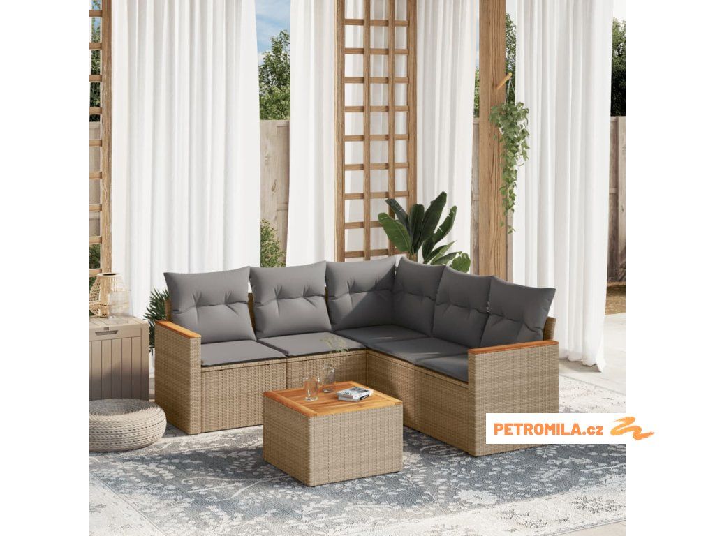 6dílná zahradní sedací souprava s poduškami béžová polyratan