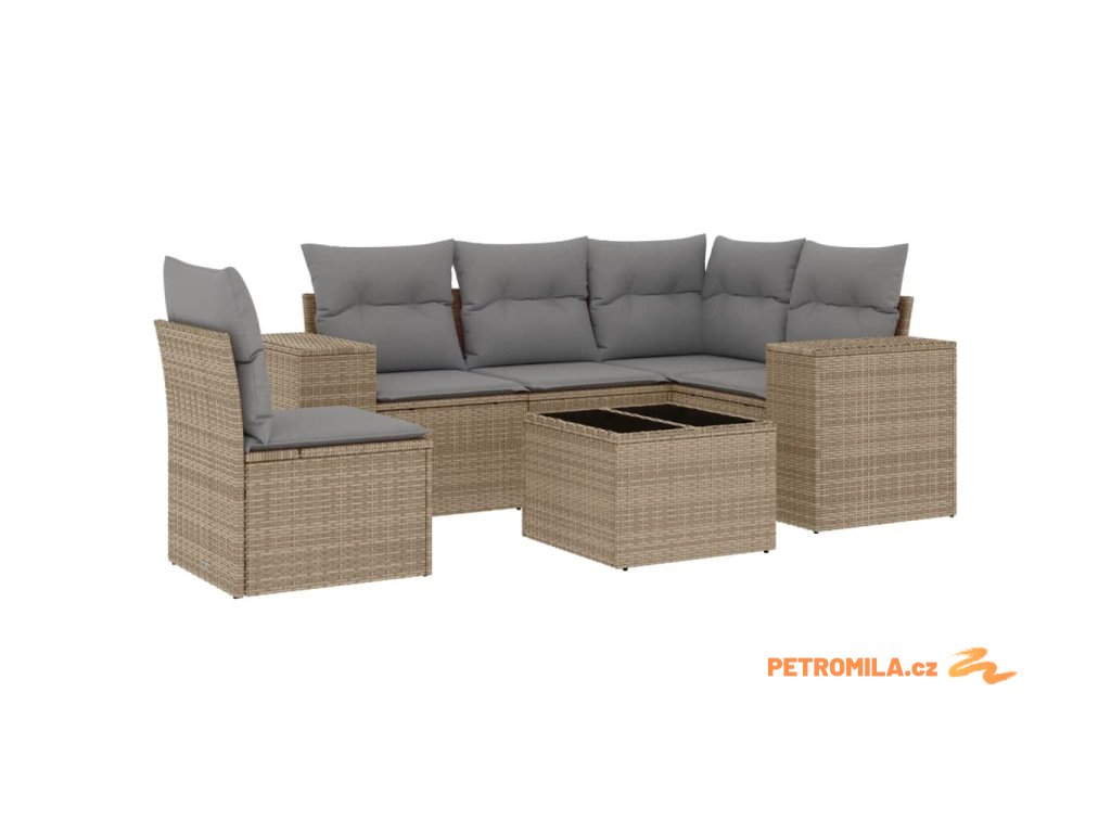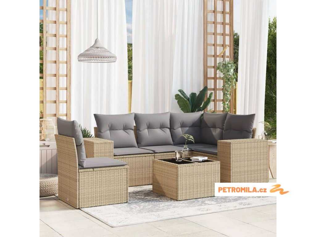 6dílná zahradní sedací souprava s poduškami béžová polyratan