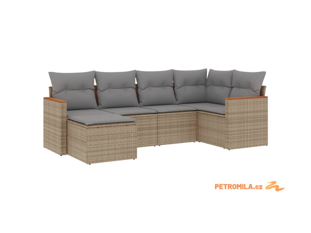 6dílná zahradní sedací souprava s poduškami béžová polyratan