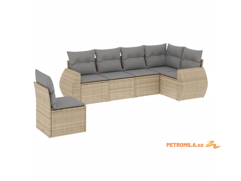 Sada zahradních pohovek s polštářem 6 pcs Béžová Poly ratan
