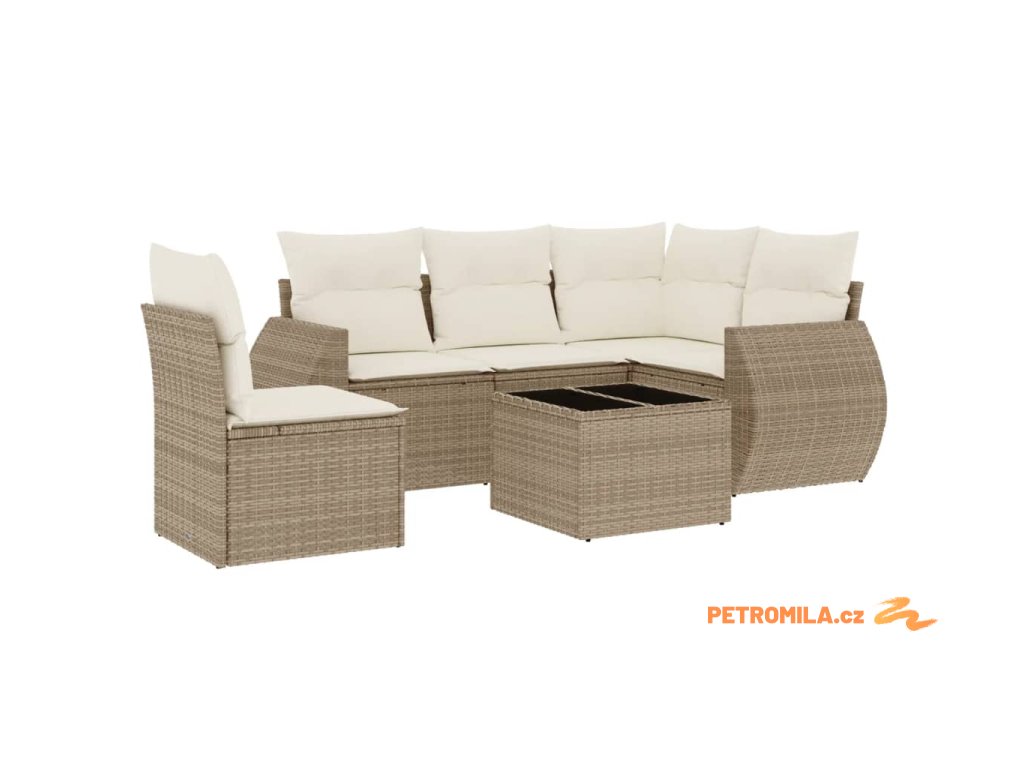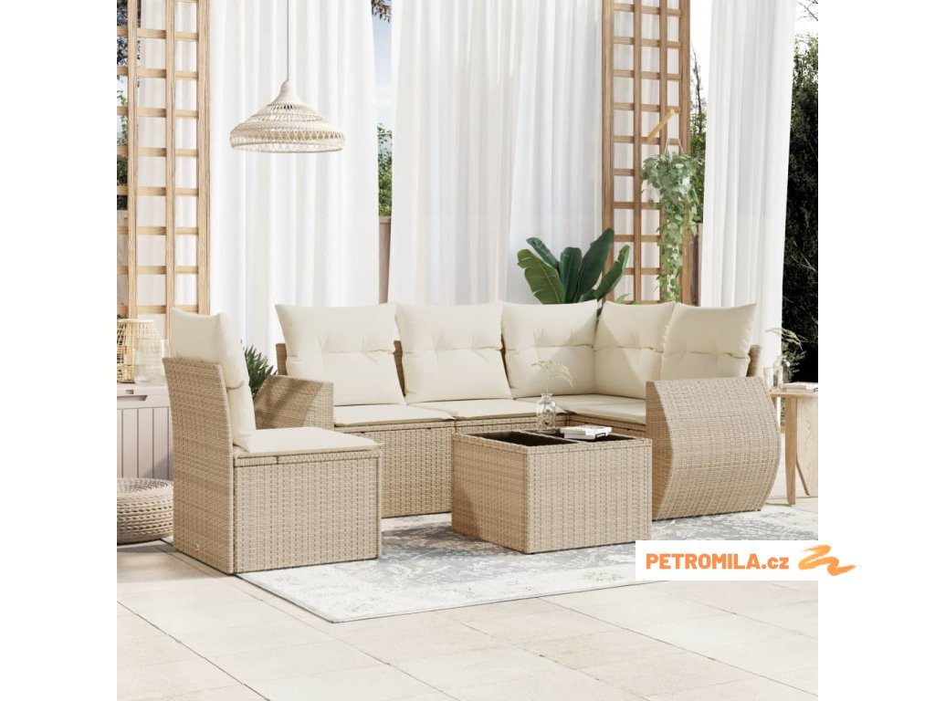 6dílná zahradní sedací souprava s poduškami béžová polyratan