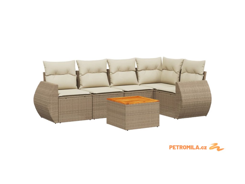 Sada zahradních pohovek s polštářem 6 pcs Béžová Poly Ratan