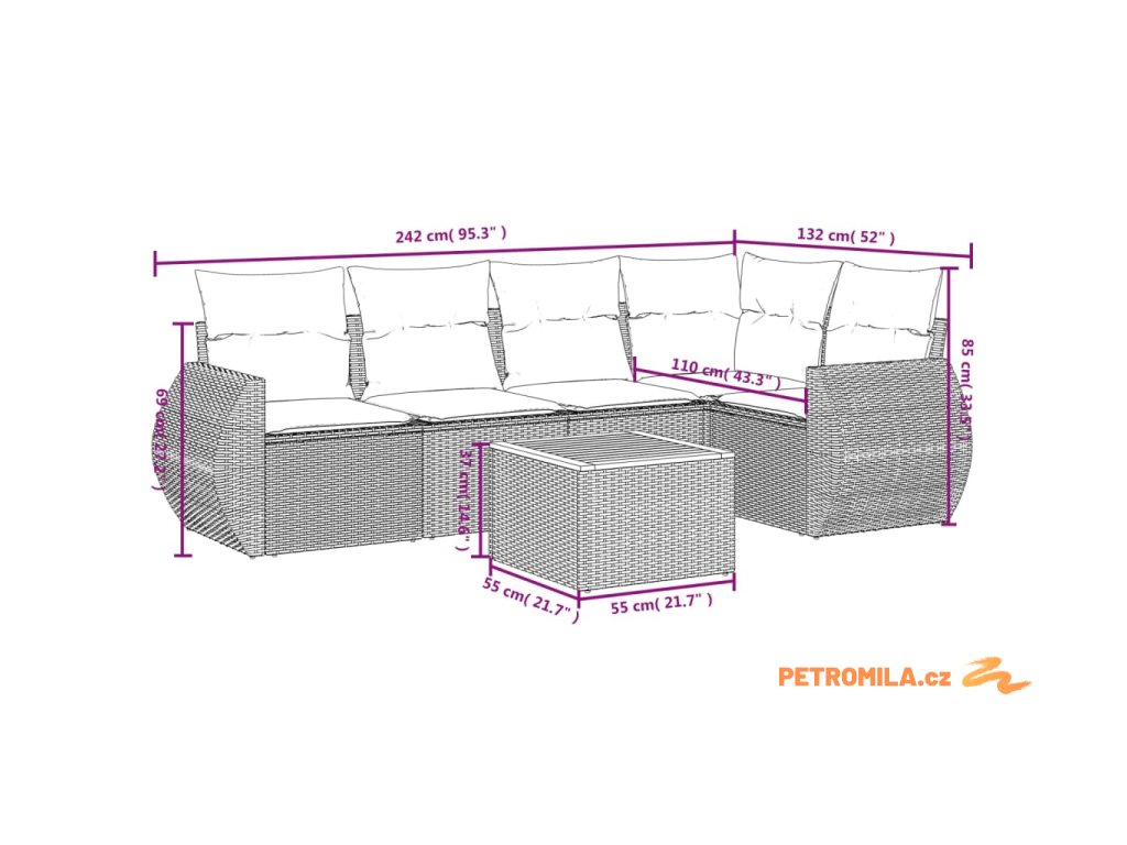 Tato zahradní sedací souprava je dokonalým doplňkem vaší zahrady, terasy nebo dvorku a poskytne vám pohodlné a příjemné místo, kde si můžete povídat s rodinou a přáteli nebo jen tak odpočívat a užívat si pobyt venku.