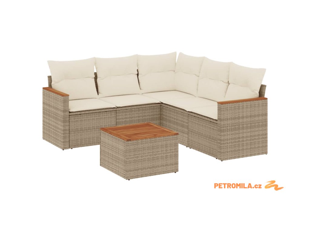 Sada zahradních pohovek s polštářem 6 pcs Béžová Poly ratan